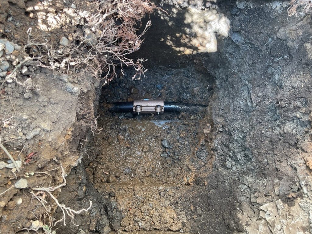 今回の現場では、屋外の埋設給水管より漏水が発生していました。