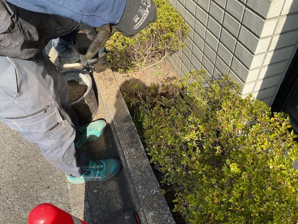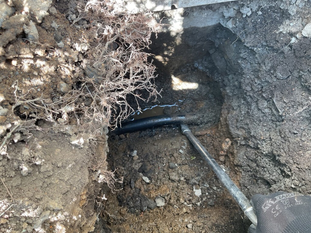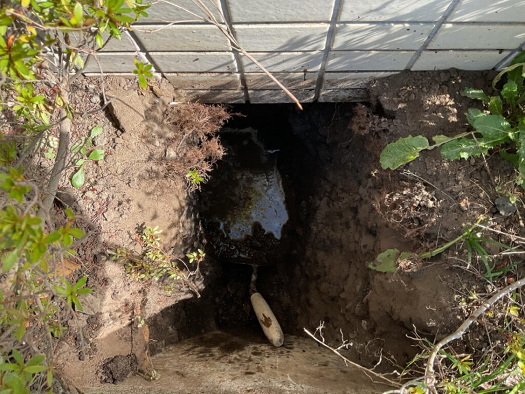 漏水箇所は、屋外花壇の中、深さ1m程の場所にありました。