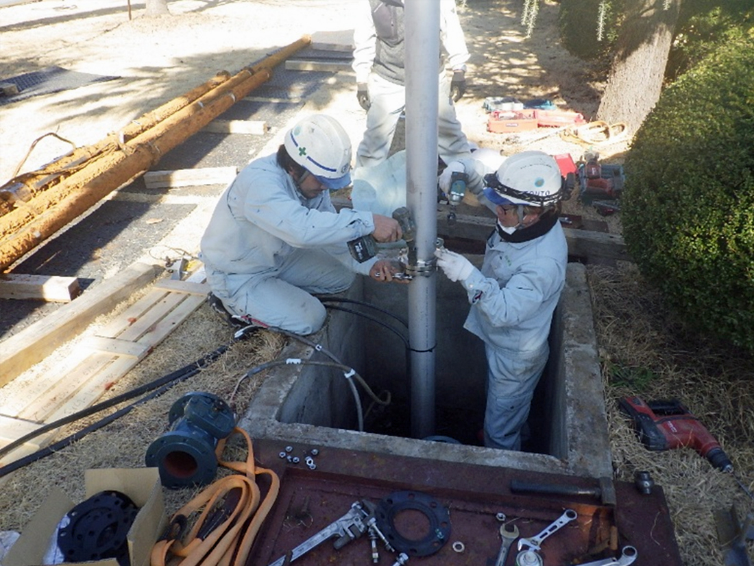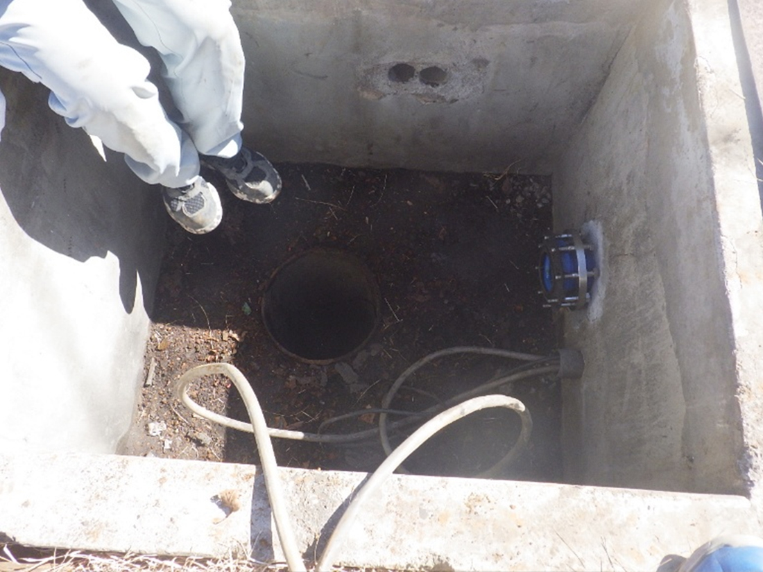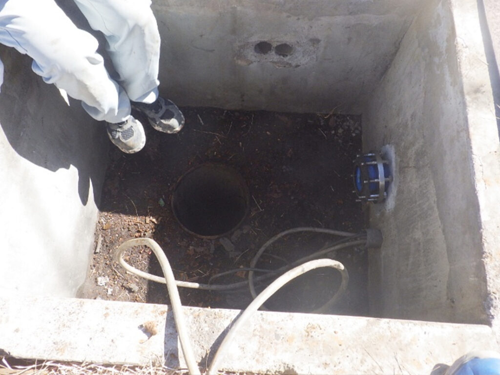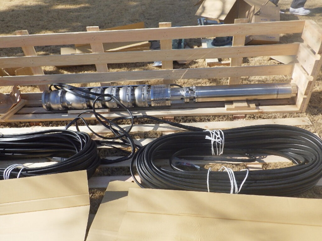 現地調査により、既設ポンプの型式は確認出来ましたが、配管の詳細な図面資料が無く、井戸の深さが分かりませんでした。