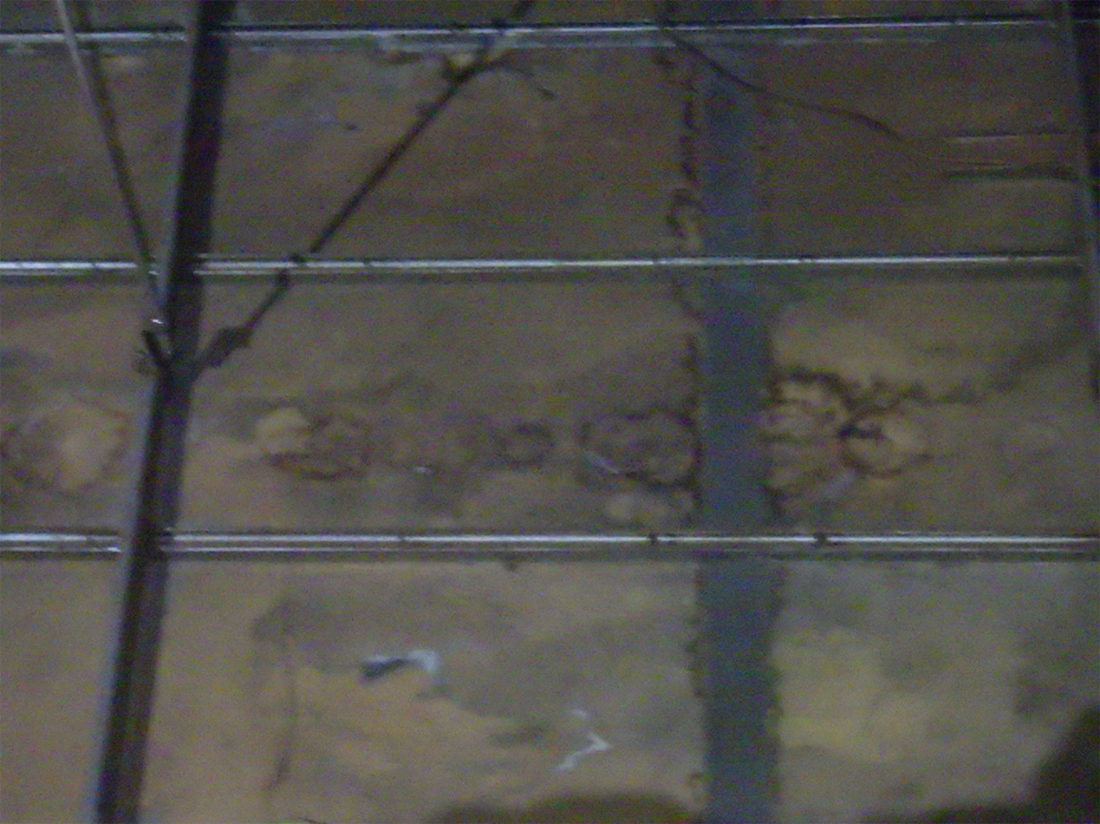 問題の場所は、製品保管の為の低温倉庫となっており、天井表面や壁に、結露やシミが発生する様になったとの事でした。
